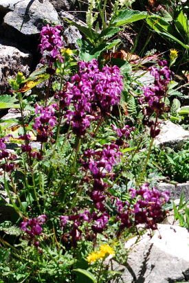 ![]() 8月1日6:29 始発のバスを待つ北沢峠に、咲き始めたクリンソウの群落 |