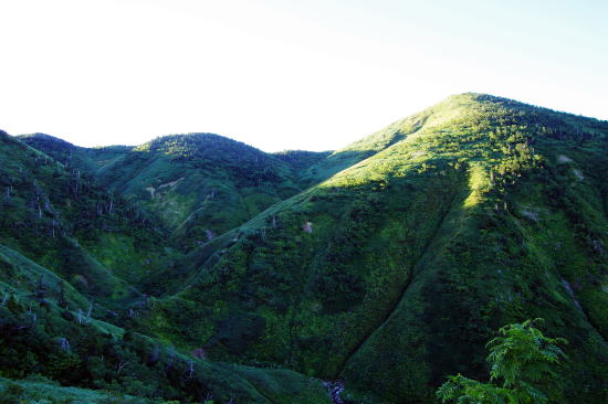 ![]() 6:20 ケビン裏の湿原から朝の白山 山頂の御前峰までよく見えた |