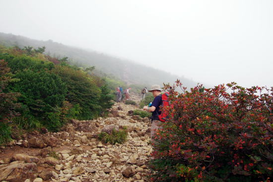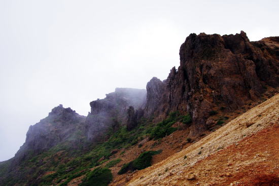 ![]() 12:24 沼ノ平 馬ノ背の登山道に微かに漂うイオウ(硫化水素?)の匂い |