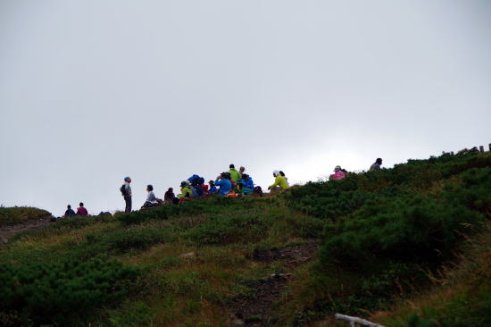 ![]() 12:28 大岳と井戸岳の間の鞍部で、ひと休みする人々 寛ぎのひと時 |