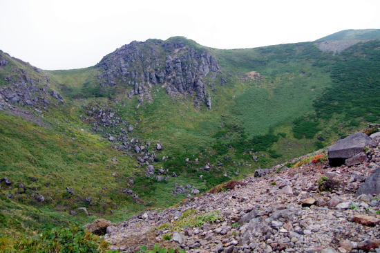 ![]() 14:09 赤倉断崖の縁を通る ここは火口ではなく崩壊の崖、危険地帯 |