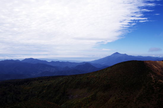![]() 13:39 下山して くろがね小屋間近 安達太良のほんとうの空と谷間に棚引く雲 |
