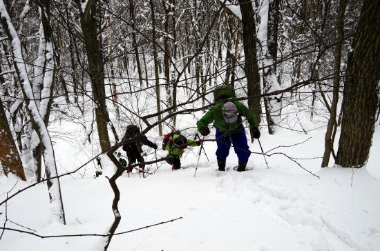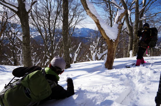 ![]() スノーシュー・デビューのJunjyさん、Topを狙って虎視眈々 |