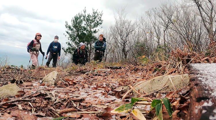 | 村上市間島にある能化山(のっけさん)。380mの里山ハイキングで、2021年の我らが阿賀北山岳会、山納めです。日本海の海鳴りを聞きながら、ガサゴソと落ち葉を踏み歩くのも気持ちのいいものです。今朝の雨はここでは雪だったらしく、山頂に淡雪。冷気と共に初冬の山の雰囲気を漂わせています。能化は「のうげ」とも読んで、仏教用語のようです。登山口に寺院があるので、その関係の山名でしょうか。山の尊さは高さにあらず、仏に謂れありとすれば、この山もまた尊し。 さて、これまで長く愛用してきた一眼レフともついに決別。今日からは超軽量カメラのGoproデビューです。動画なので音声を拾います。よって今日から以後、山行中は高尚な会話に徹することにしました。例えば、人生いたるところ青山あり、山中いたるところトイレありとか。午後早々に帰宅したので、早速動画を編集してYouTubeにUPしました。「山の記」からどうぞ。 |