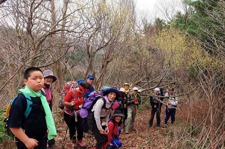| 最適の時季のことを旬と言う。草木萌えいずる前のこの時季は、早春の花の旬。まっ黄色に咲く満作の下を通り抜けたばかりで、振り返ってまだ花を見ていたいというのに、むりやり、「ハイッコッチ向いて!」とパチリ。だから、IBU少年は少々不満顔なのです。このあと、岩団扇ロードに出たとき、彼の口元は少しほころびたように見えました。最年少隊員ながら、集合の際には点呼を取って、なかなかしっかり者の副班長ではあるのです。山は年中、旬。そして、彼も日々が旬。いや、何よりも、参加した善男善女も毎日が旬の人々なのでありました。公民館登山の大平山、詳しくは「山の記」で。 | ||||