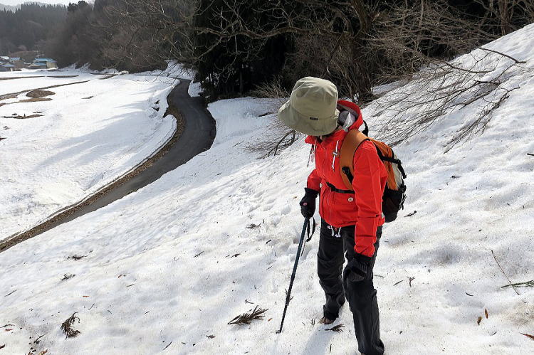 | 十三峠踏破の後半戦が来月から始まるというので、今日はその下見。行程の関係で、今回はこれまでと逆向きのコース。黒沢の集落から出発して、貝ノ淵峠と高鼻峠を歩き、小国町へ向かう。貝ノ淵峠は、車道の脇にわずかに古道が残っている。今、立っているここが、それ。残雪の斜面を登ってきて、ここから林内に入ると古道は半分車道のために削られて、片側崖の狭い道。Tamuちゃんが怖いとも言わず、必死の形相と楽し笑顔の半々で後ろについてきた。果たして、来月の本番でここを通れるものかどうか。この後、中間点の杉沢でNPO「ここ掘れ和ん話ん隊」本部に立ち寄ったら、この峠はどうやらメーンからは外されているような気配。当日は、下のアスファルト道を歩いてもらうことにしよう。NPOの理事長は、2013年にクライミングを教えていただいた吉田さんだった。最後にお会いしたのが2015年の小蓮華山だったから、6年ぶりの奇遇。さて、次の高鼻峠はアスファルト道。峠近くの上杉神社が見晴らし良く、ここを当日の休憩所にすることして、小国町の中へ。そこは、かつての宿場町であり城下町。江戸時代の享和絵図(1800年代)を手がかりに、痕跡を捜して街歩き。Tamuちゃんは、ブラタモリのようだと大喜び。あったあった、お城の土塁。忘れ去られ打ち捨てられたかのようにして、かつて城郭だった一角にL字状の大きな土手が残っていた。御濠だったと思われる暗渠の流れを見つけて、またまたブラタモリだとTamuちゃん大感激。ま、こんな峠歩きもたまにはいいか。詳細は来月11日の本番後にレポートします。 | ||||