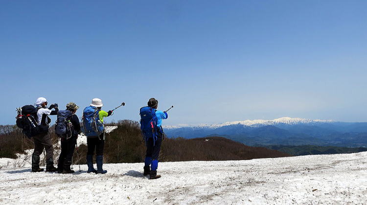 | この連休は2泊3日で大朝日岳を予定していた。Unqさんは5人×3日分の食糧をすっかり用意していた。ところが天候が整わない。山梨方面は好予報なのだがコロナで遠征は自粛。近辺予報は4日だけ絶好天。さて、どこの山にしようか。思い残している山があった。1年前、山頂目前でタイムオーバー、引き返した日本平山。よしそこだ。前回より1時間早く集合して、余裕を持たせた。結果、大成功。途中、雪で倒れた木の障害物や藪漕ぎがあったものの計画通りに山頂に達し、一等三角点にタッチ。終日天候に恵まれて眺望の素晴らしいこと。往き返りずっと飯豊の白峰が一緒。見飽きることのない麗姿。固く締まった残雪の急斜面に靴先を蹴り込んで登るキックステップの心地よさ。歌の一つ二つも出ようというもの。歩行距離17㎞、累積標高1340m、所要時間12時間20分の長い長い山歩き。大朝日に代えても余りある山行ではありました。詳細は「山の記」にUPしてあります。さて、3日分の食糧はどこで使おうか。 | ||||