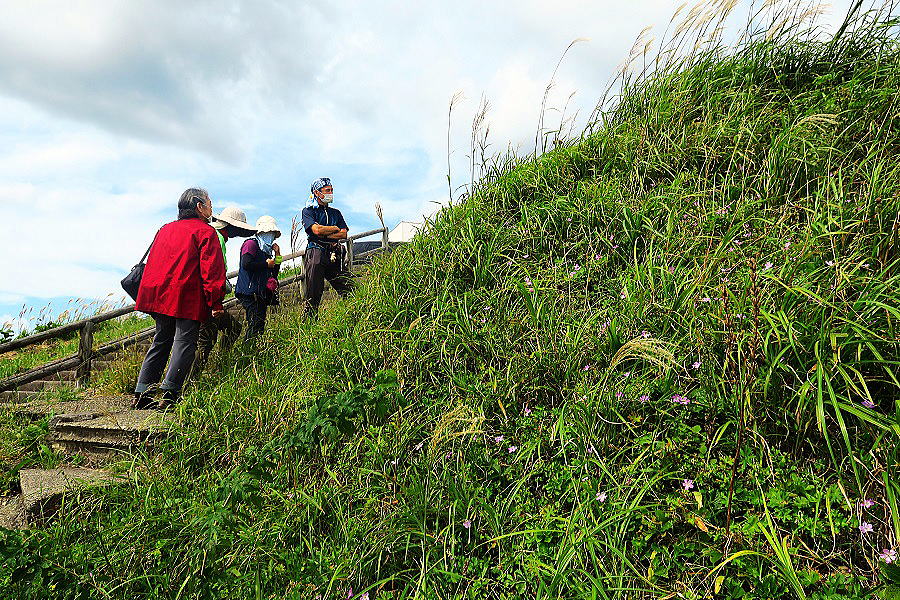 | 寒風山の登山道?にピンクの花々。ん、これは?とよくよく見れば、なんと、ハクサンフウロ!高山植物のはずでは?緯度が高いせいだろうかなどと、つぶやきながら登る。30m、登ったことになるのかどうか。階段なら10mでもすごく昇ったというから、こっちの漢字ならいいのか。 | ||||