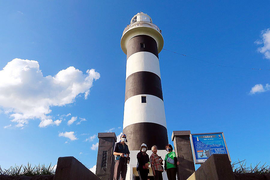 | 岬と言えば灯台。灯台と言えば、我らの年代では灯台守。喜びも悲しみも…と、どこか哀愁を感じてしまうが、現代の灯台はほぼ役目を終えたらしく、もちろん灯台守もいない。ただの展望台。そのせいだろうか、灯台そのものがどこかサバサバして明るくスキッとして見える。 | ||||