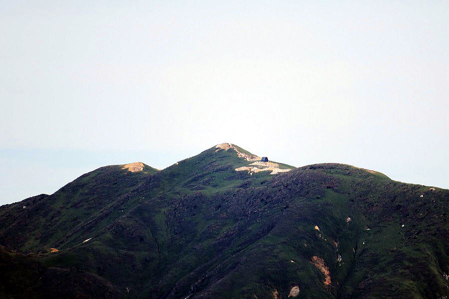 | 山頂の釣鐘は今日外されたらしい。着いた時、山頂の人ごみの中にKさんがいて、我らに気づいてちょっと話し、早々に団体で下って行った。どうやらこの団体が釣鐘を外す行事をしたようだ。混んでいたのはその行事の参加者達だったのかもしれない。山頂が空いたおかげでドローンを上げることができた。 |