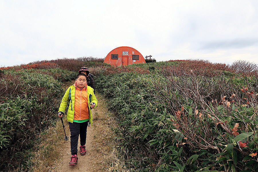 | 1時間半近く山頂で過ごしているうちに、下山の時刻。ドローンもカメラも持たない少年は退屈していたのだろうか、いそいそと山頂を後にするのでした。どうやら、丸坊主のせいで後ろ髪引かれる思いもなかったようです。 |