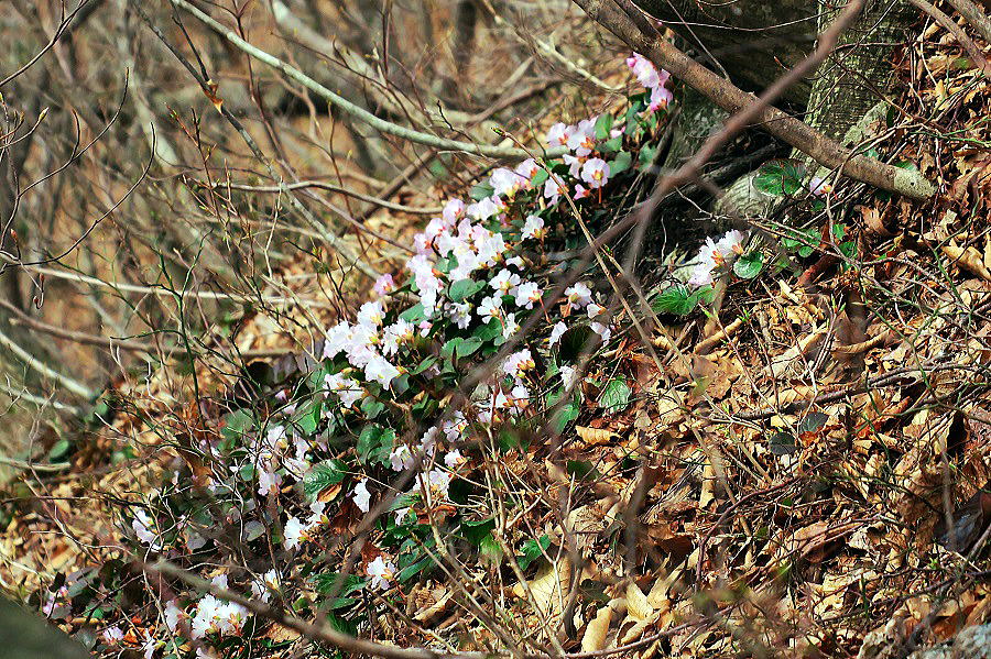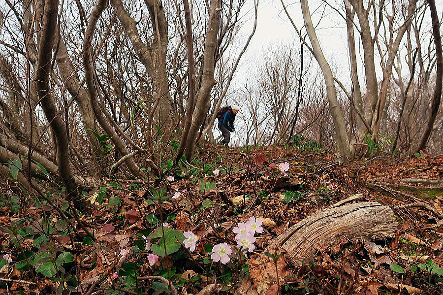 | 庭の白梅も咲き出した。杏の花芽も桃の花芽もふくらんで、いい季節になりました。常春の国があれば即移住するのに、と思うようになったのはいつ頃からだろうか。さてここ、大平山も、早春の花の咲き始め。まだ芽吹き前の明るい林内に、山桜に満作に岩団扇に猩々袴。ほかの草木が目覚める前に、早く早くと、健気な早起き。我らはのたりとそれを眺めるが、彼らは必死なのだろう。頭上では橅の芽が動き始めている。陽に当たれるのは今だけだぞー、なんて花たちが囁き合っていた。今日は、28日本番の公民館登山のための下見。3日後はもっと花盛りになるだろう。花の季節の終わらないうちに、早く早くと、3月から4月の我らの山計画もびっしり。のたりの筈の春なのに、なぜかせわしない。花を追い 花に追われて 時が往く | ||||