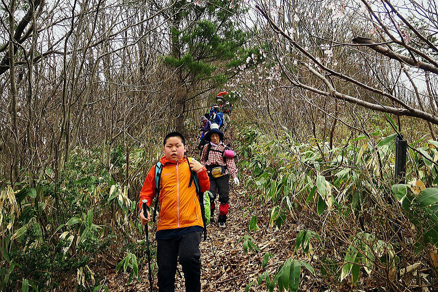 | 最適の時季のことを旬と言う。草木萌えいずる前のこの時季は、早春の花の旬。まっ黄色に咲く満作の下を通り抜けたばかりで、振り返ってまだ花を見ていたいというのに、むりやり、「ハイッコッチ向いて!」とパチリ。だから、IBU少年は少々不満顔なのです。このあと、岩団扇ロードに出たとき、彼の口元は少しほころびたように見えました。最年少隊員ながら、集合の際には点呼を取って、なかなかしっかり者の副班長ではあるのです。山は年中、旬。そして、彼も日々が旬。いや、何よりも、参加した善男善女も毎日が旬の人々。公民館登山の大平山、健脚びとの清しくも爽やかな一日でした。 |
