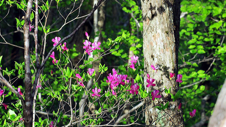 | ムラサキヤシオとミツバツツジが出迎えてくれた。これはどっちだったか判然としない。綺麗であればどっちでもよい。 | ||||