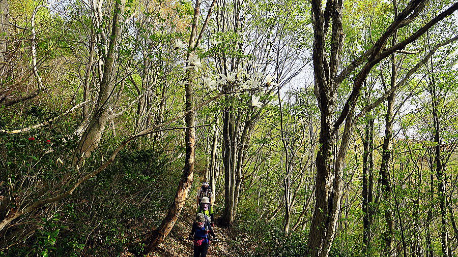 | コブシ咲く緑の森にようやく戻った。新緑が目に優しい。 | ||||