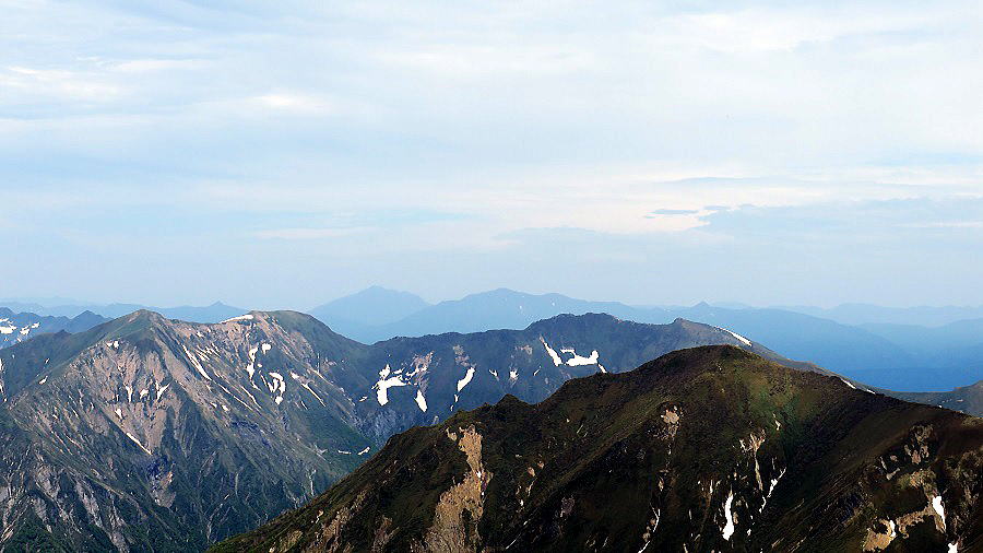 | ズームで谷川岳と右に茂倉、その間に遠く尾瀬の燧ケ岳と至仏山 | ||||