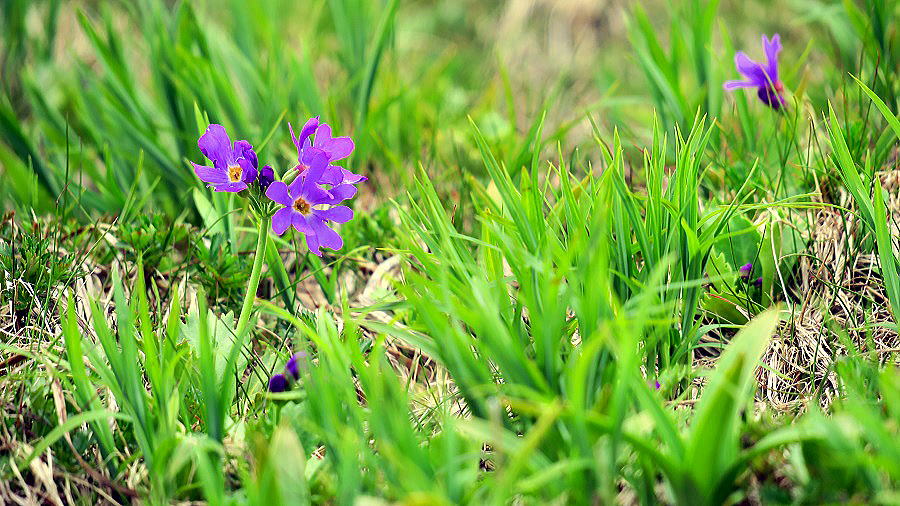 | 白山小桜 草原のあちこちで咲いていた もう少し経てばこの草原は各種の花でいっぱいになる | ||||