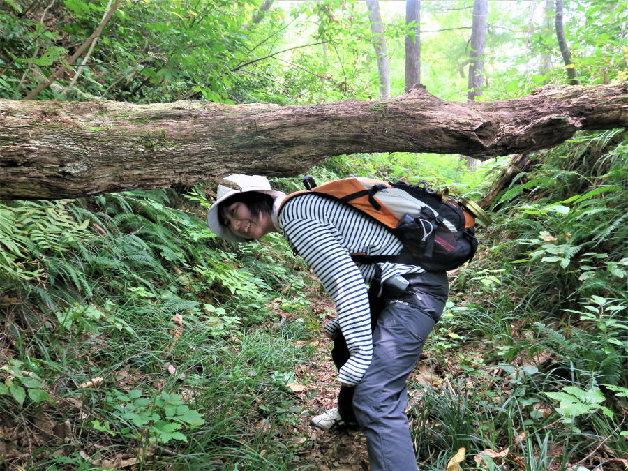 | 倒木が一本。これは多分、峠歩き参加者を喜ばすためかも。 | ||||
