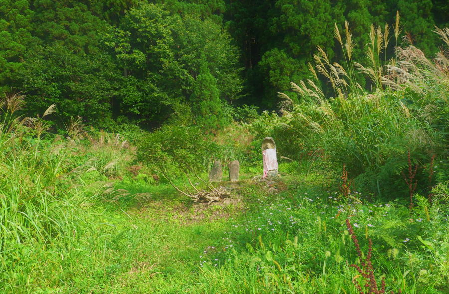 | 白子沢宿と沼沢宿の境の地に立つ塞(さえ)ノ神。春にここに来たときは深い草薮を漕ぎ分けて入った。私たちのために刈ってくれたんですかねーなんて、同行のTamuちゃんは言う。私たちというのは、今度歴史館の峠歩きでここへ来る予定の一行のこと。白子沢宿であったお母さんも、沼沢宿であったお母さんも、市野々から歩いてきたと言うと、別に驚いたふうでもなく、ああ、峠を越えてかと、極平然とした反応。ということは、我らのように峠歩きを楽しむ人が結構いるということ。草薮を刈ったのは、そういう人たちのためかもしれない。私たちもその部類に入る。ということであれば、Tamuちゃんの一言もあながち自己中とも言えまい。学識のTamuちゃん曰く、塞ノ神信仰はいつしか地蔵信仰と結びつき混合しごっちゃになったのだと。♬村のはずれの お地蔵さんは いつも にこにこ 見てござる♬ 童謡「見てござる」の一節。どうりで、地蔵はいつも村のはずれにおわします。 | ||||