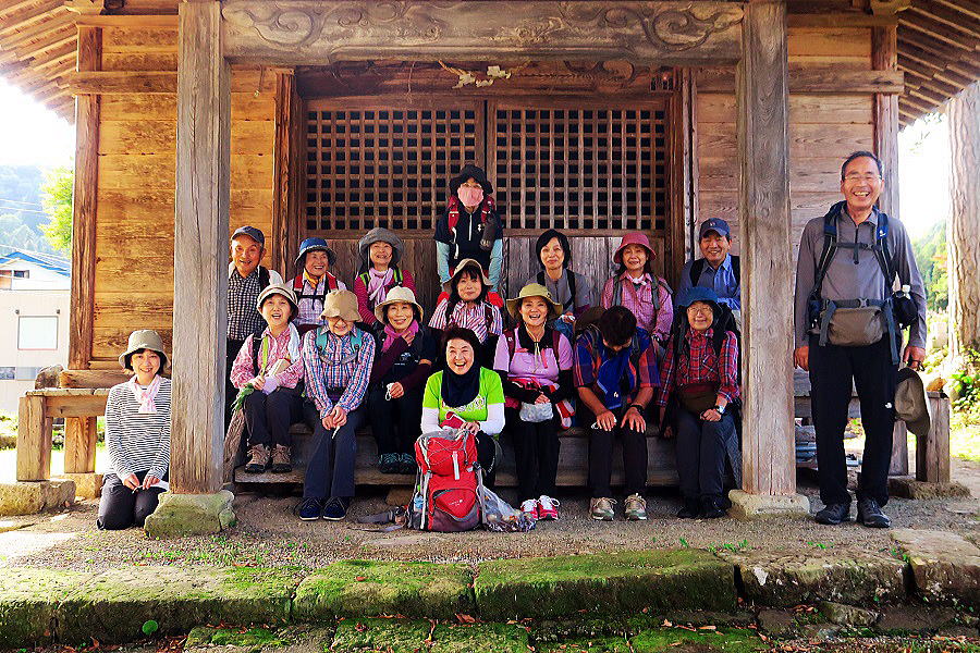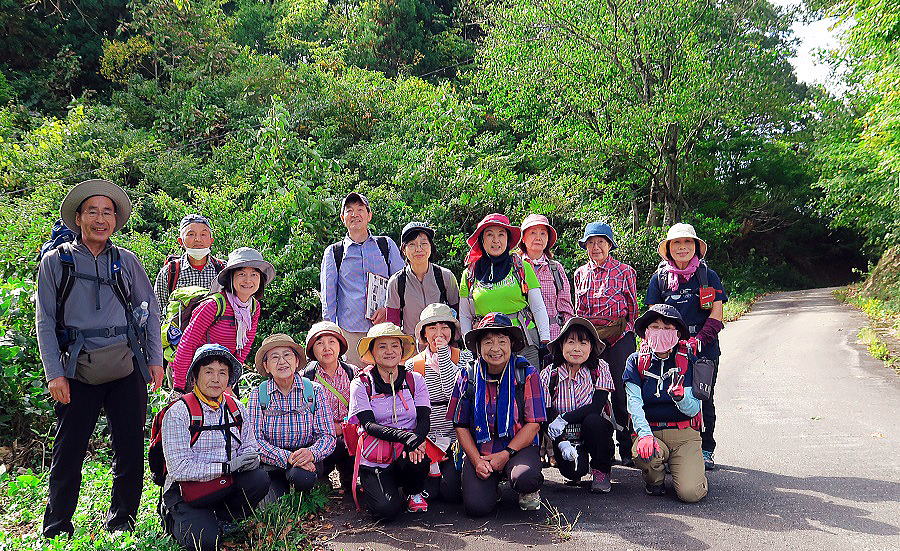 | 歴史館の十三峠歩き、今年度第3弾。市野々宿から桜峠を越えて、ここ、白子沢宿の白子神社に到着した一行。歩行距離7㎞、高低差180m、車道舗装の峠道を完歩して、疲れも見せずにこの笑顔。この後、バスに乗車して若干の移動の後、数百メートルの才ノ神峠を歩いて、本日の行動終了。昨年から始まった十三峠歩き。これでちょうど10峠完遂。残す3峠中、大久保峠は通行不可のため、宇津峠と諏訪峠の2峠を10月と11月に越える予定。果たして、今日のような天候に迎えられるかどうか、全ては神様の気分次第。 |