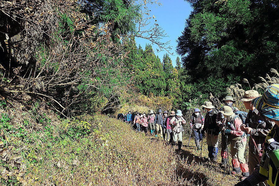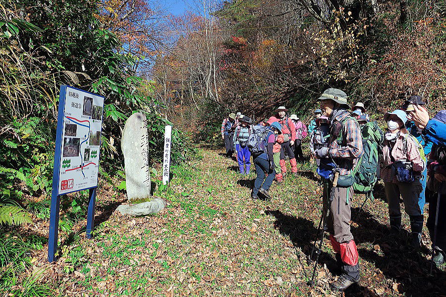 | 旧街道の古道は道も乾いて厚く積もった落ち葉の道、フカフカサクサクと歩く気持ちのいいこと、これだけでも山に来た甲斐があるというもの |