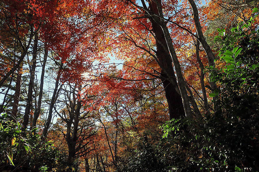| どこの山へ行っても、紅葉は午前より午後が美しい。西日を透かした紅葉は特に美しい。 |