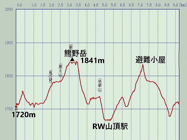 | P(レストハウス)11:55発―12:11刈田岳―13:38熊野岳―14:18地蔵山―14:37RW地蔵山頂駅15:00―16:02避難小屋―16:55P(レストハウス)着 | |||