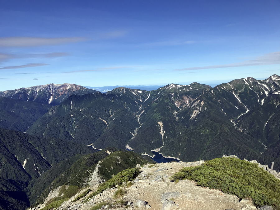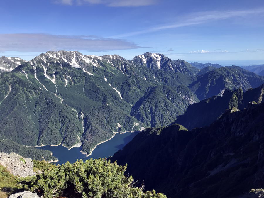| 山頂直下に黒部湖 対岸に立山 別山 剱岳 | |||