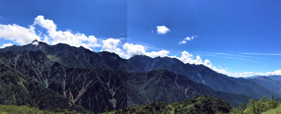 | 笠ヶ岳へ向かう稜線上、弓折岳近く 朝陽のシルエット、槍・穂高 ところで、弓折岳よりずっと双六小屋近くの稜線に クロユリベンチという休憩展望所があって そこに、愛用のゴープロカメラを置き忘れてしまった 暫く進んでふと気づき、あわてて取りに駆け戻った 途中すれ違う登山人に、ベンチでカメラを見なかったか?と尋ねつつ 結局ベンチ近くまで戻った時、それなら拾って持ってきたという人 鏡平小屋に預けるつもりだったと言う 危なかった 笠へのルートは、その小屋は通らない カメラもさることながら せっかくの撮影記録がふいになるところだった 雨にも雷にも、わずかの差で遭わなかったことといい すべて僥倖に恵まれた 日頃の行いの良さのたまものとは思いつつ 思いあがらずに謙虚に生きよう |