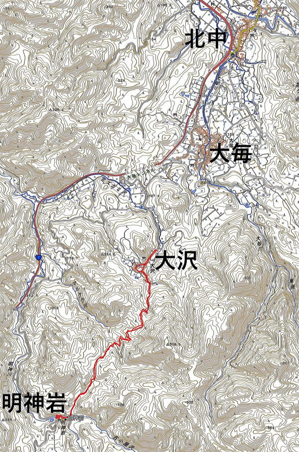 | 大沢集落発8:22-9:04笠松-9:49大沢峠-10:12明神岩10:23-1156大沢集落着 この後バスで大毎集落(昼食) 大毎-北中(徒歩) | |||