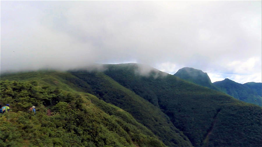 | 神室(かむろ)といえば禿と書いておかっぱ頭のことを指す が、しかし、神そのものを指す言葉でもあるようだ 笹谷峠から山形神室岳へ続く稜線を歩いていると 神が現れる どうやら女神さまのよう 谷を挟んだ対岸、仙台神室岳が女神の頭部で 胸に手を組み静かに仰臥する御姿が、なんとも神々しい 稜線の道には、裏白瓔珞躑躅が満載 9年前に来たのは7月半ば 3週間違えば、花はすっかり入れ替わる いやいや、今年の花は去年の花ですらない 一期一会は、花との出会いを指す言葉 |