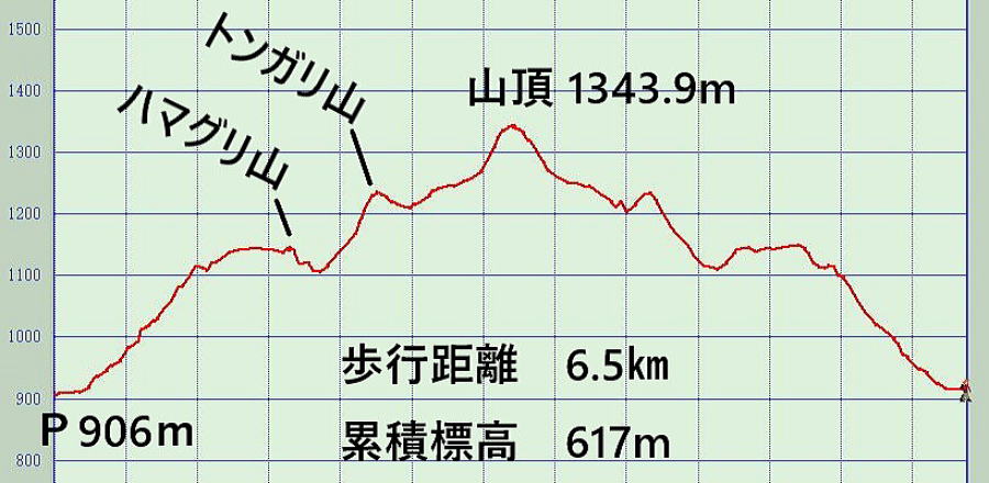 | 笹谷峠P発8:49-9:51ハマグリ山10:05-10:355トンガリ山-11:05山頂11:50-13:43P着 | |||