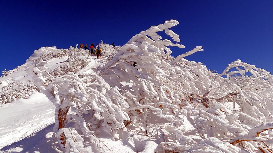 ![]() あれが剣ヶ峰山2020m ![]() 剣ヶ峰越え最難場 凍てついた氷の岩場 ![]() 樹氷の先に武尊山頂 ![]() 武尊ブルーの空の下 2158mの山頂到着 ![]() 下山の剣ヶ峰山 名にし負う峻鋒 |