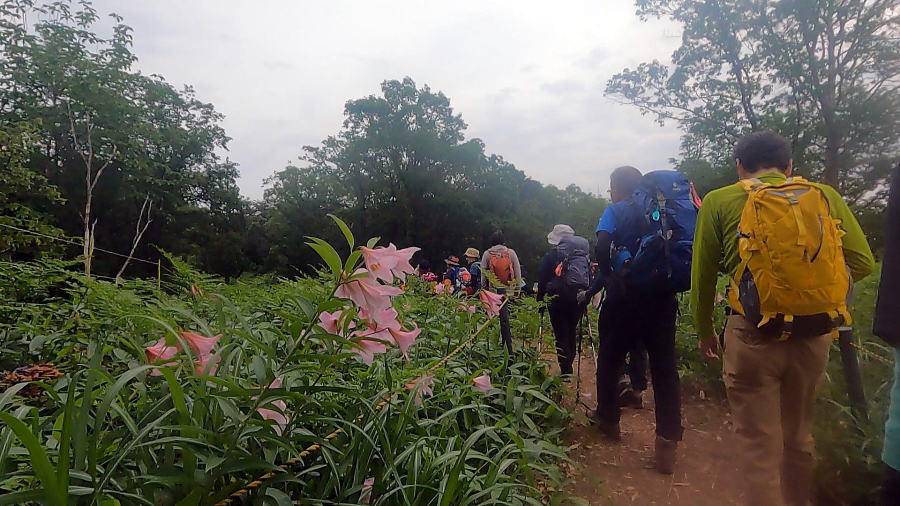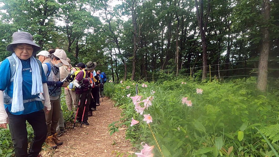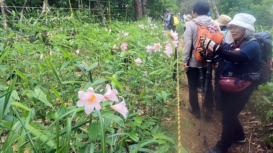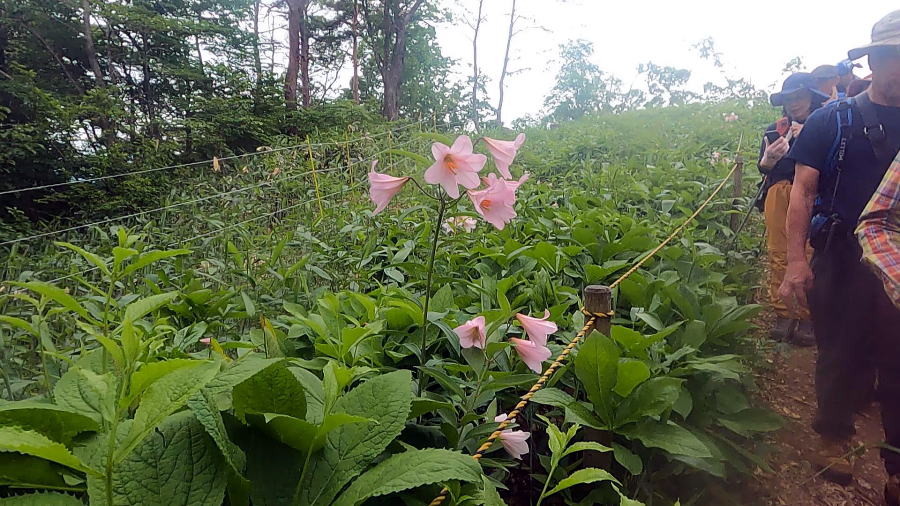 | 関川村歴史館主催の山城探索会は ヒメサユリの群生で名高い三条市(旧下田村)の高城址へ 現地はヒメサユリ祭りの真っ最中で、ちょうど開花の最適期 群れ咲くヒメサユリの中を歩くとその先に「高城本丸址」 ここは下田郷を支配した下田長尾氏の城塞 城主は川中島合戦で活躍したものの、謙信の怒りに触れて誅殺、高城も落城 そんな歴史の悲話を知ってか知らずか 可憐なヒメサユリたちが艶やかに淑やかに咲き誇り 探索会参加の善男善女一同、ただただ感歎歓声 行きのバスの中では、みっちり歴史講座 団子より花の人びとかと思いきや どうしてどうして 中世越後の戦乱の世にも興味津々 かくて、団子も花も両方味わい尽くした山城探索会 なのでありました |