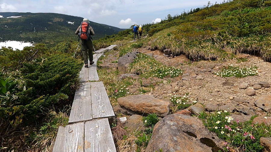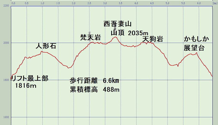 | <コースとタイム> RW発8:15-8:22天元台 リフト発8:30-9:17リフト最上部9:27-10:20人形石10:31-11:42梵天岩ー11:55天狗岩分岐付近12:38ー13:00山頂ー13:28天狗岩神社ー14:41かもしか展望台14:46-15:08リフト最上部ー15:54天元台RW15:56-16:04RW着 |