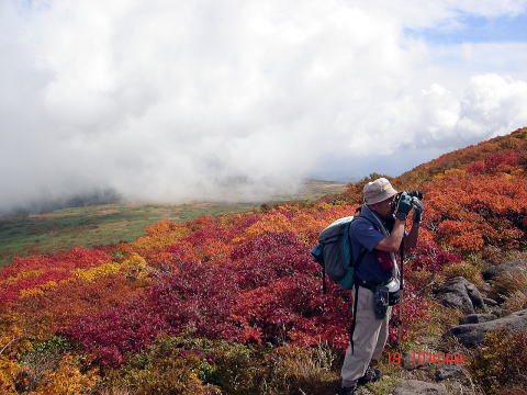 昔、一度この月山に登ったことがある。 あれは確か昭和50年代も初め、30歳代の頃だったと思う。 そのとき、学生時代に北海道一周自転車旅行で使った白灯油のラジュウスを持って行って、山頂で湯を沸かそうとしたような気がする。目詰まりしたのかポンプがイカれていたのか、どうにも使い物にならなかったようだった。 そんな失敗を、実は自分ではよくは覚えていないのだが、そのとき一緒だったTomoさんは、その後もずっと、このときの不始末を「月山ラジュウス事件」などと大袈裟に呼んでいるようだった。 まだ若かったせいだろう、ズック履きのハイキング気分で、平らな山道を歩いたような思い出が残っていて、山に登ったという意識はほとんどなかったような気がしている。 その月山に、この日、Haseさんの呼びかけでYoko長老と3人で出かけたのだったが、結構汗をかく登りもあって、昔来た時こんなに登るところがあったかなと、30年の歳月と体力差・体重差をしみじみと思った。 それはともあれ、9月のこの時期、紅葉にはまだ早いだろうと来る途中の車の中で話していたのだが、案に相違して、仏生池の辺りから上は真っ赤に燃えた紅葉が広がっていた。 稜線を辿る登山道、谷から湧き上がる雲、燃える紅葉、実をつけ始めた高山植物、それらが皆、素直に、あーいいなーと胸を打った。心に染入った。 30年前の若い頃、そのような感動は起きなかったようだ。もし起きていれば、その後も山登りにのめり込んでいたかもしれないが、幸か不幸かそうはならなかった。 不思議なもので、同じものを見ても、胸を打つかどうか、心に染入るかどうかは、年齢によって、そのときの置かれた状況によって、異なるのだと思う。 山は、ある程度年をとって、気持ちに余裕ができてから登るのがいいのかもしれない・・・あくまでも自分の場合は、ということだが。 ところで、月山の三角点は、神社裏手の目立たないところにあって、登山コースからは少し離れているため、そこへわざわざ寄る人は少ないらしい。 Yoko長老の、確かこの辺りにあった筈だという案内で、山頂神社の裏手の三角点を探した。一等三角点の大きな標柱だった。 国土地理院の2万5千分の一地図を見ると、月山の山頂は1984mで、三角点の標高は1979.5mとある。 三角点は山頂に立つもので、三角点のあるところが山頂とばかり思ってきたが、どうも、そういうものでもないらしい。 あ、そうそう。このとき、実は、一つの課題をかかえていて、Haseさんがいうには、折角来たのだからその課題解決を月山神社にお願いしたらいい、イヤすべきだ、ということで、神主さんにお願いして祈願祈祷をしていただいたのだった。 結果として、その祈願は叶えていただけなかったのだが、その後何度も山に登っていてしみじみ思うのは、神は確実にいる、存在するということ。 直感的にだが、これは確かなことだと、山にいると思えてくる。 ただし、その神の存在は、はるかに大きすぎて、瑣末な人間の些少な願いごときにいちいちの頓着などしてはいないということ。これも確かなことのように思う。 その遥かに大きな存在である神と意思の交流を図ろうとするのだろうか、この日も白装束に身を固めて山道を急ぐ一団に出会った。 何度か山に登っていると、我が国古来の山岳宗教の意味が、少しは分かってくるような気がする。ほんの少しだとは思うが。 |