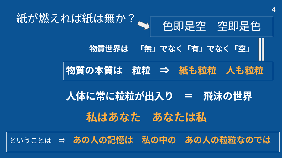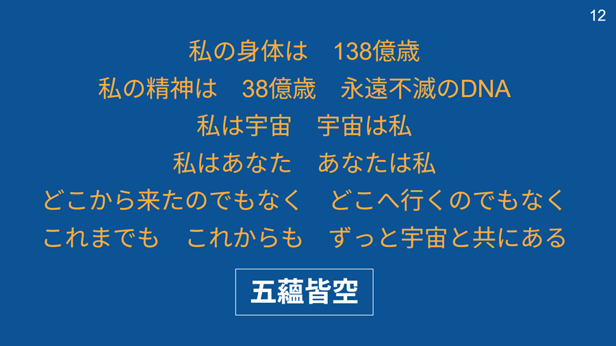 過日、「清流会」という仲間の会で、頼まれて 「ギター抱えて生き死に考」というタイトルで話をした サブタイトルは 私たちはどこから来てどこへ行くのでしょうか ~下手なギターを聞きながら考えてみませんか~ その時に使ったスライド15枚をここにUPした 今、改めて、その時の話を整理しなおして、 各スライドの下に書いていこうと思う ただ、一気には書けないので、YouTubeの下手なギターでも聞きながら 何日かかけて整理していくつもりでいる そもそも「生き死に考」などという固い硬い話 せめてギターでも弾きながら、ゆったりと柔軟に考えてみたい いや、ギターだけでなく、ジムのランニングマシンに乗っかって ただ只管黙々と走る90分 それがまた、絶好な瞑想の時間なのだ | |||