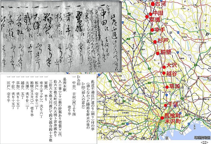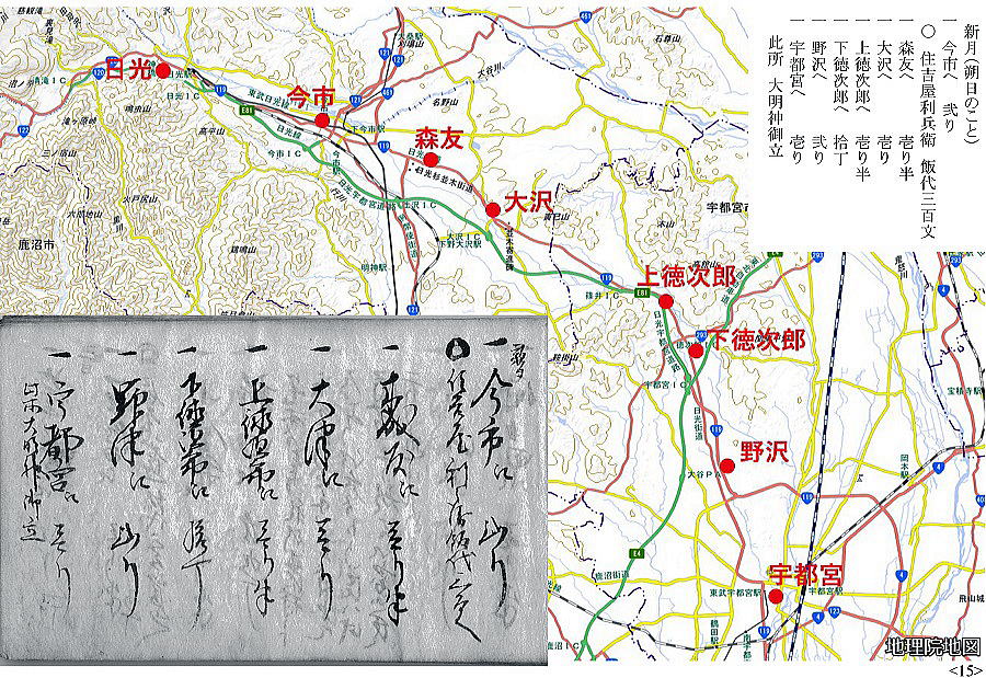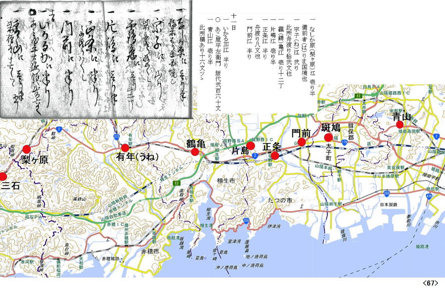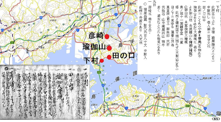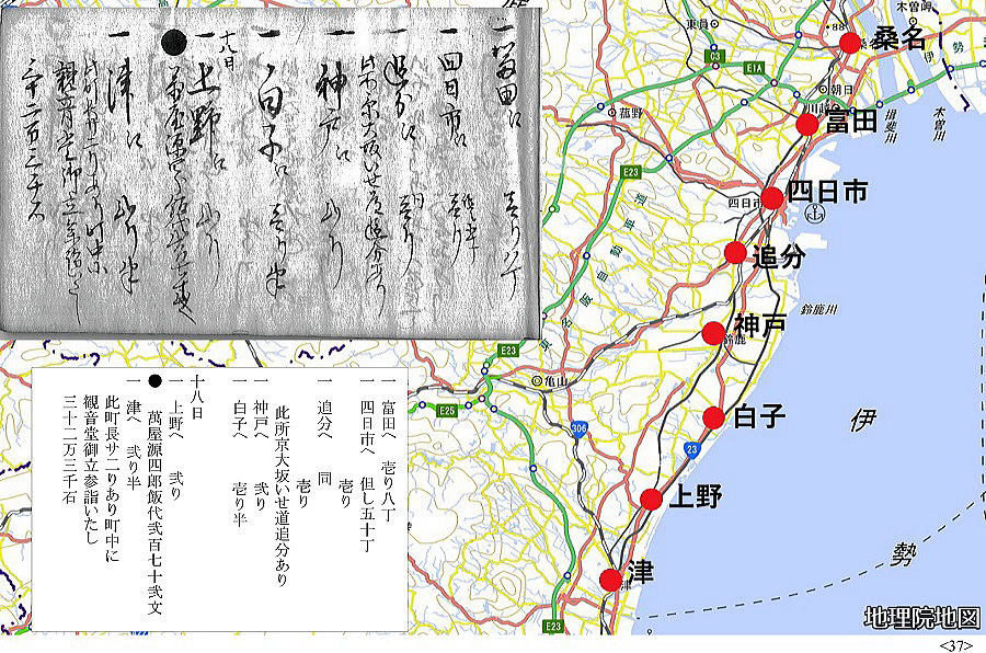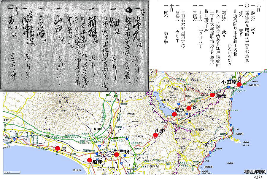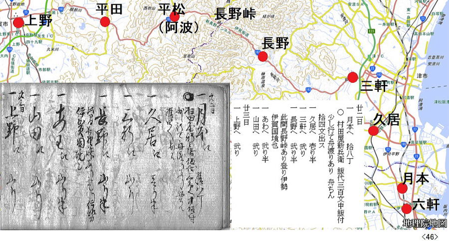 歴史館の古文書講座「道中記解読会」 始まったのが平成30(2018)年12月、あれから丸3年、4年目に入った今日読み終えた。77日間に渡る旅の記録は小さな手帳にびっしり書き込まれて95頁。全行程の泊地を地図に落とすと上のようになった。利根川と瀬戸内海の船を除けば、全て徒歩の旅。正確ではないが、概算で2500㎞は超えるようだ。病気にもならず怪我もせず、よくもまあ歩き通したものだと驚き入る。毎日の泊賃が記録されていて、概算で、1泊300文として80泊で24000文。最終頁の相場書によれば、1両がこれも概算で6000文。とすれば、4両。現代の金額で1両6万円とすれば、24万円。思ったほどの大金をかけたわけではなさそうだ。が、当時の越後の農民にとってどれくらいの額に当たるのか。母が、昭和30年代、集落の伊勢講でほぼ同じコースを旅行している。鉄道の旅だが、どれくらいかかったものか健在なら聞けたのにと、時すでに遅しだ。江戸時代、小規模の自作農より、土地を持たない水呑みといわれた百姓の方が、商工業、運送業などでむしろ金銭収入があったとも言われる。こうやって古文書を読み始めたら、とにかく江戸時代は面白い。