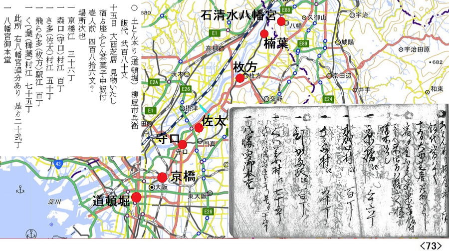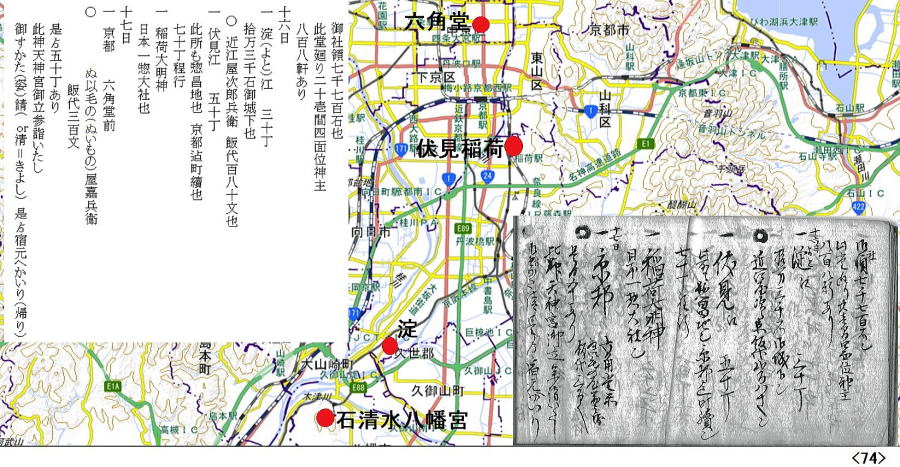 | 1月16日石清水八幡宮~淀・泊 17日淀~伏見~京都六角堂前・泊 |