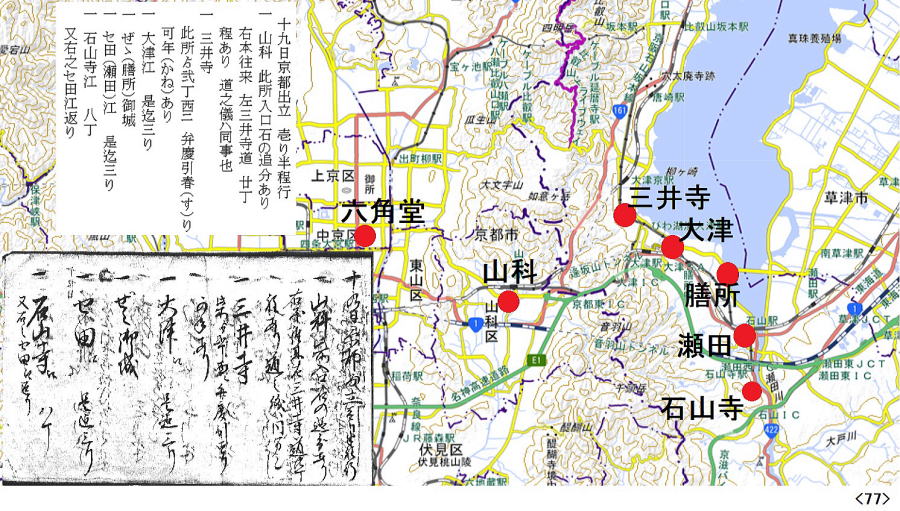 | 1月19日京都六角堂前宿屋発~石山寺 |