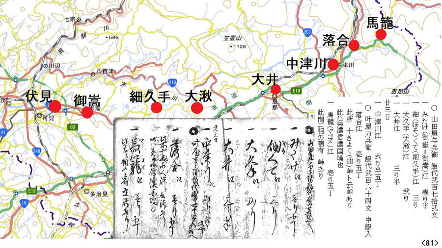 | 23日伏見~中津川・泊 24日中津川~馬籠 |