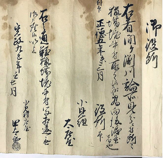 | 平田甲太郎家文書「正徳4年鮭猟場の覚の写し」寛政9(1797)年 文書№508 | ||||