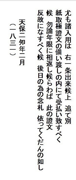 | ① 入会山から売り薪伐り出し念書 文化5(1808)年 平田家文書№736 | ||||