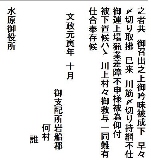 | ④ 鮭川〆切取払い訴訟 文政元(1818)年 平田家文書№610 | |||||||||