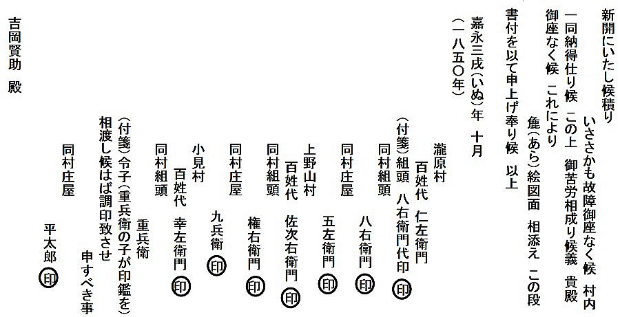 | <嘉永3(1850)年 荒川中島の新田開発 関係文書四通> | |||||