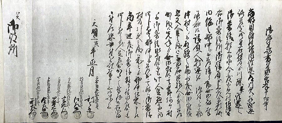 | ② 天明2(1782)年 貝附村地内川欠普請に付き奉答書 (文書№504) | |||||