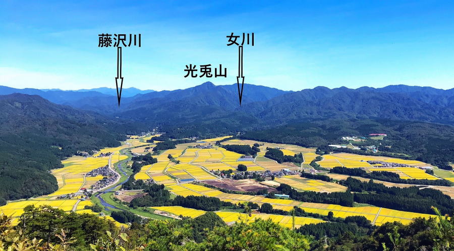 ![]() 平田平太郎の大願の地 <平太郎が大訴訟を起こした目的は、この地の開発にあった> 女川左岸段丘上に広がる美田 2021.9.20 朴坂山山頂から |